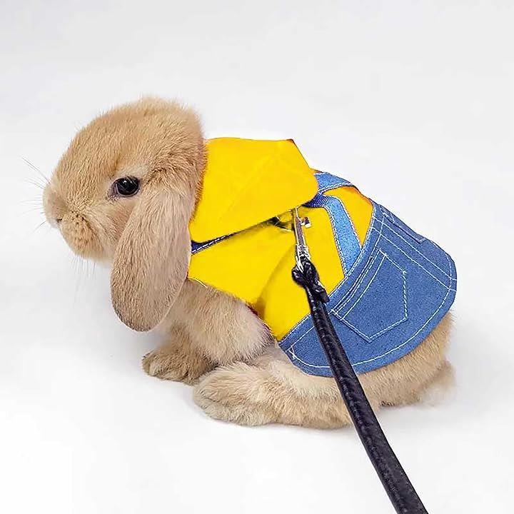 うさぎハーネス リード うさぎ用品 うさぎ服 デニム モルモット 子犬 小動物用 胸あて式 調整可能 着ぐるみ お散歩用リード お出かけ用品 迷子防止 牽引ロープ 簡単着脱 記念撮影 仮装