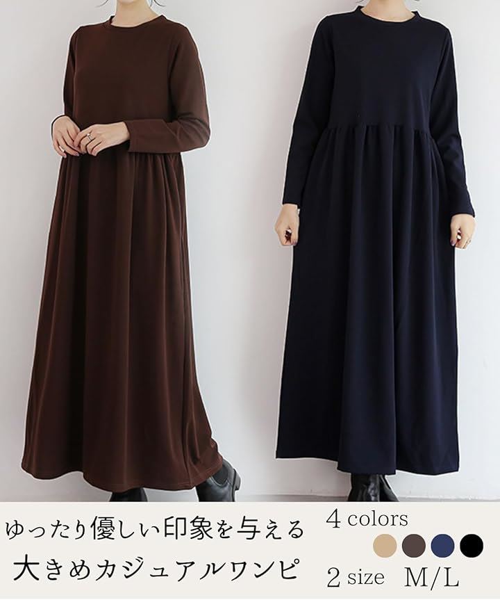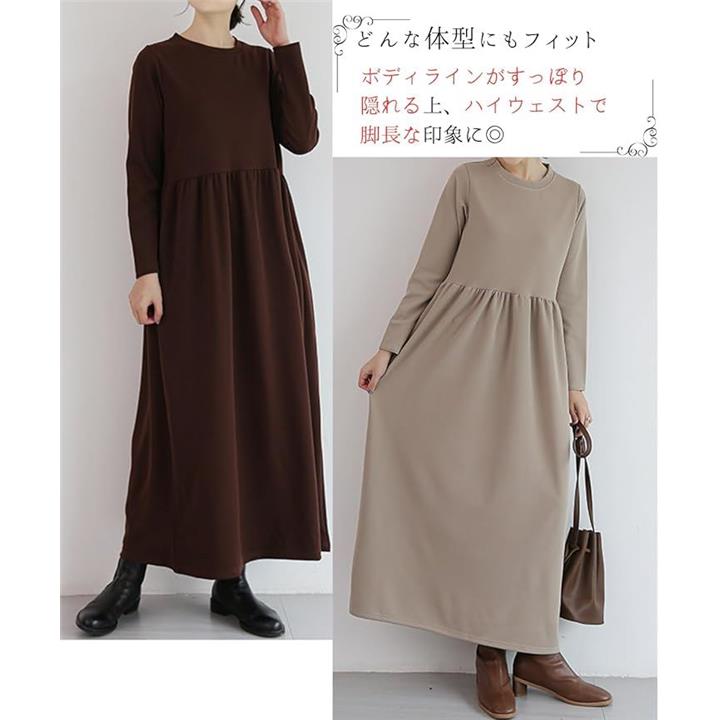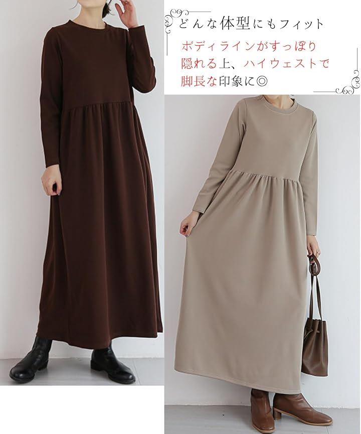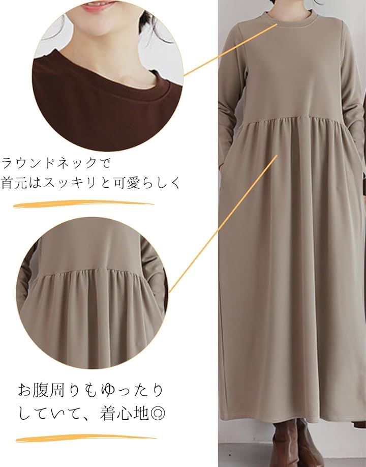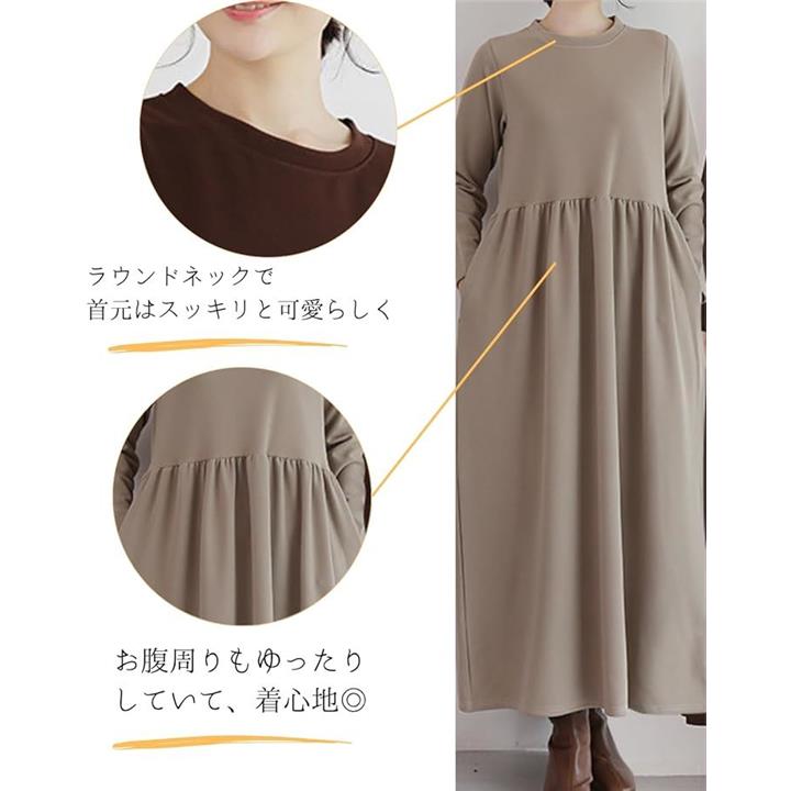 上品x体型カバー マタニティ ワンピース レディース ロング 長袖 ポケット 大きいサイズ