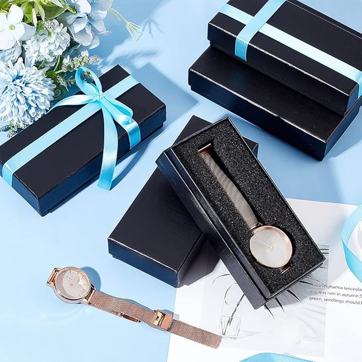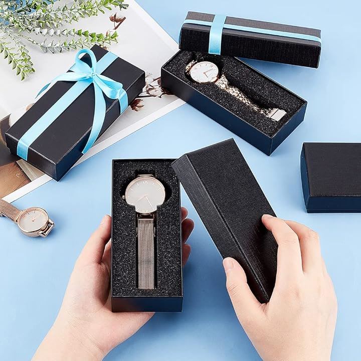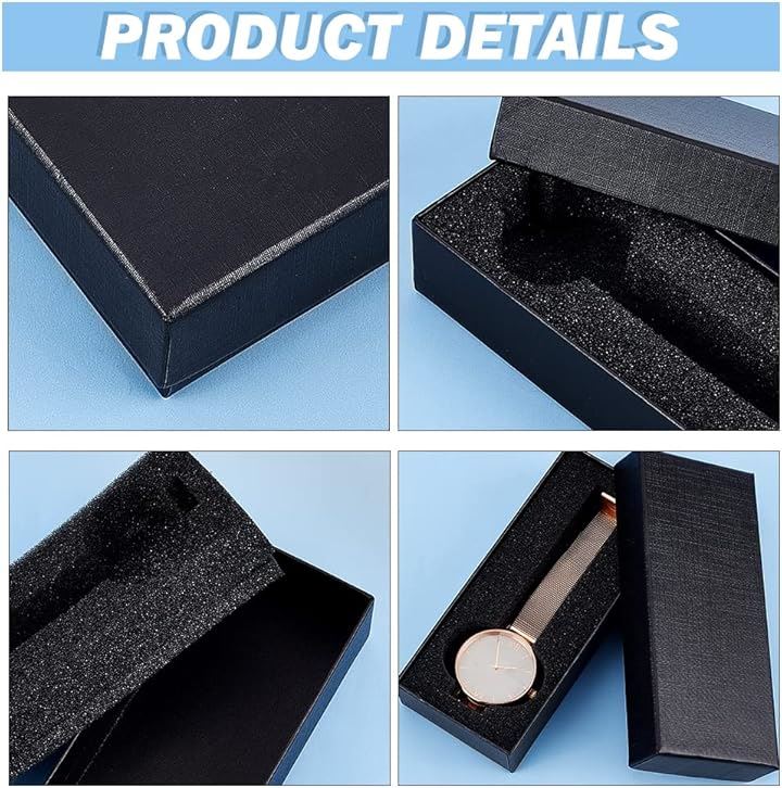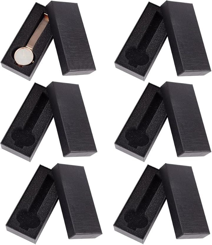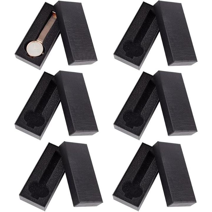 6個セット ギフトボックス 腕時計収納ケース 腕時計用 紙ボックス ウォッチボックス 展示 アクセサリーケース 持運び ほこり保護ケース スポンジ付き 男女兼用 父の日 誕生日プレゼント 黒色 14.5x6.5cm