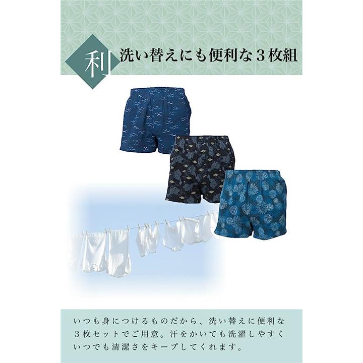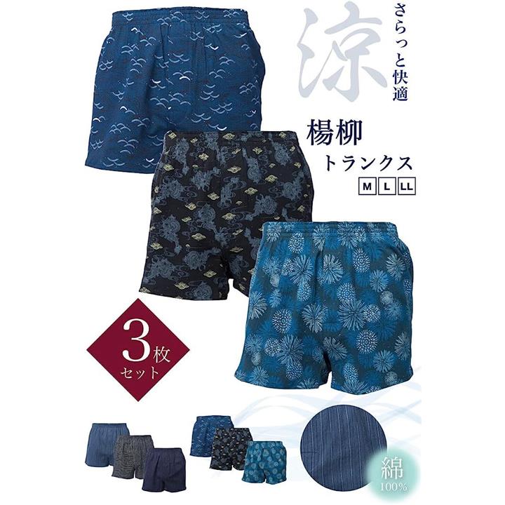 楊柳 トランクス メンズ 3枚組 パンツ 下着 インナー 男性 通気性 吸湿