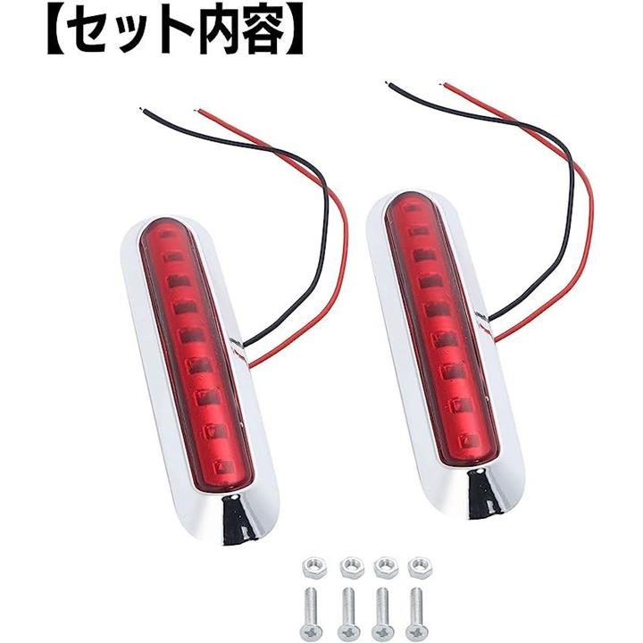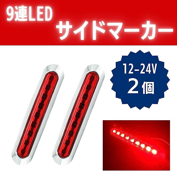 互換品マーカー ランプ 9連 LED 12V 24V 兼用 2個セット トラック トレーラー バイク 汎用 サイド ライト メッキカバー