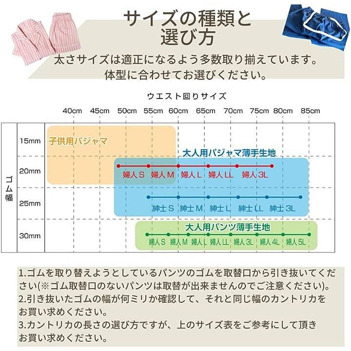 裁縫が苦手な方、高齢の方、男性でも簡単にウエストゴム交換できる商品となってます