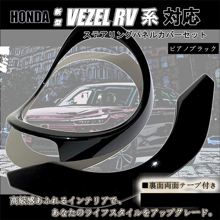 互換品新型 ヴェゼル RV系 RV3 RV4 RV5 RV6 ステアリングパネル ステアリングガーニッシュ 2pcs セット ピアノ ブラック 内装 カスタム パーツ アクセサリー