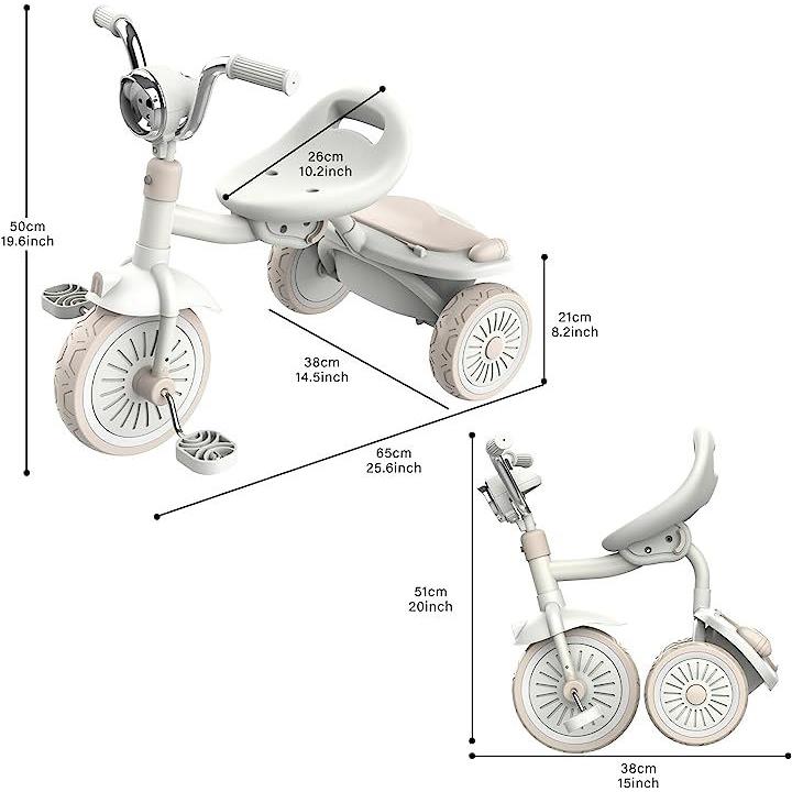 三輪車 子供用 ペダル付き 調整可能 コンパクト 超軽量 組み立て簡単 おもちゃ 乗用玩具 プレゼント 白色