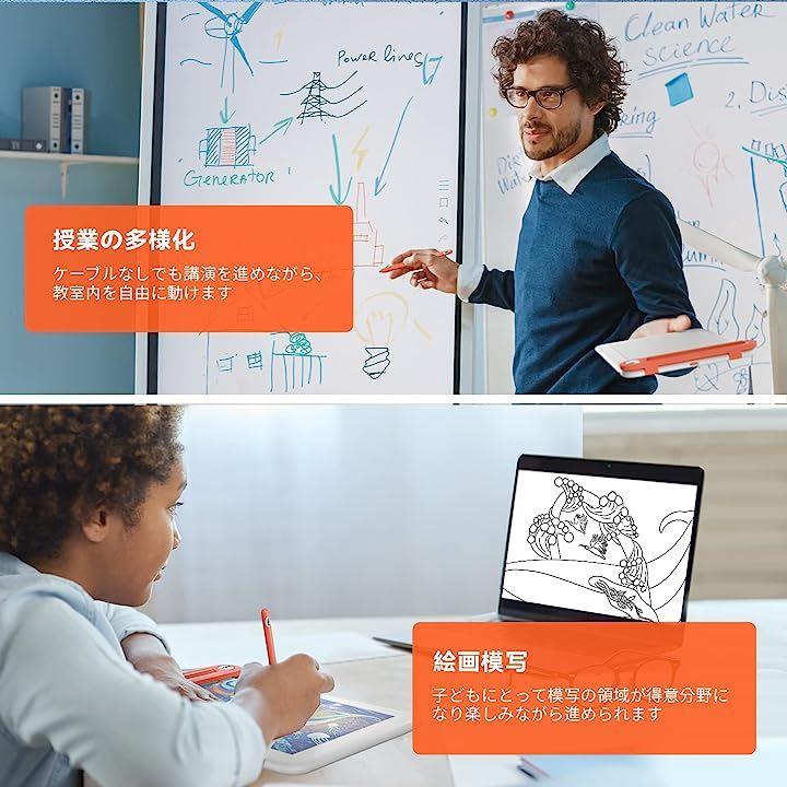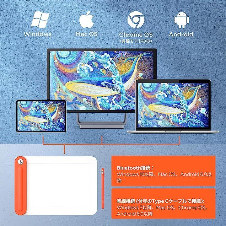 白+オレンジの配色、ミニマリズムなデザイン、滑らかで丸みのある曲線、仕事でも遊びでも、このQ8Wペンタブは目を引きます。