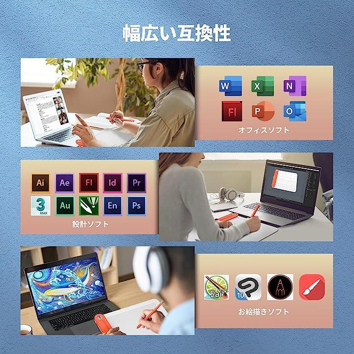 3.「充電不要のペン」:Q8W板タブは充電不要のPH08スタイラスペンが付き、お絵かきライフをもっと便利にします。