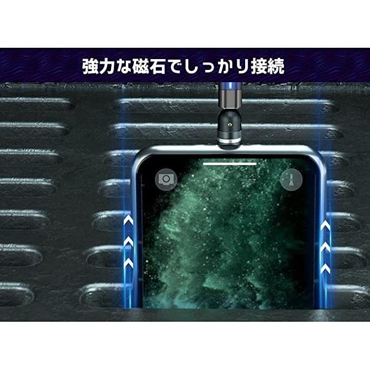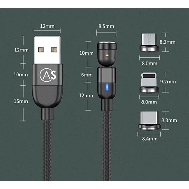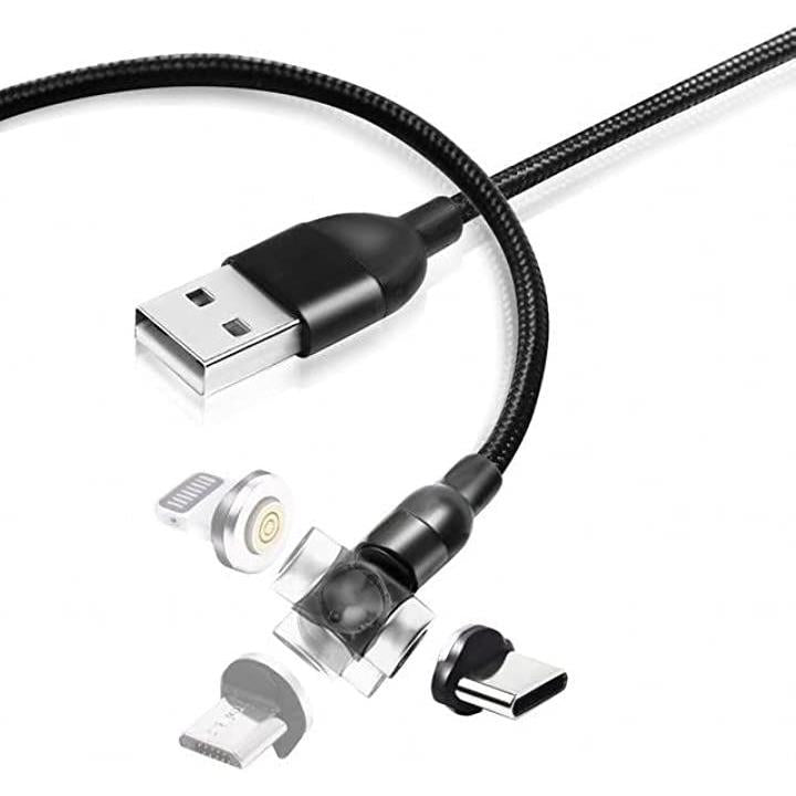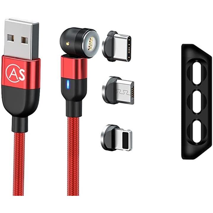 互換品540°turnケーブル ios互換 レッド・2m 回転 マグネット 充電ケーブル 3A 高速充電 データ転送可 3in1 typeC micro USB コネクタ収納ケース付き