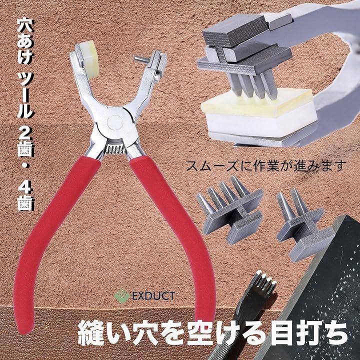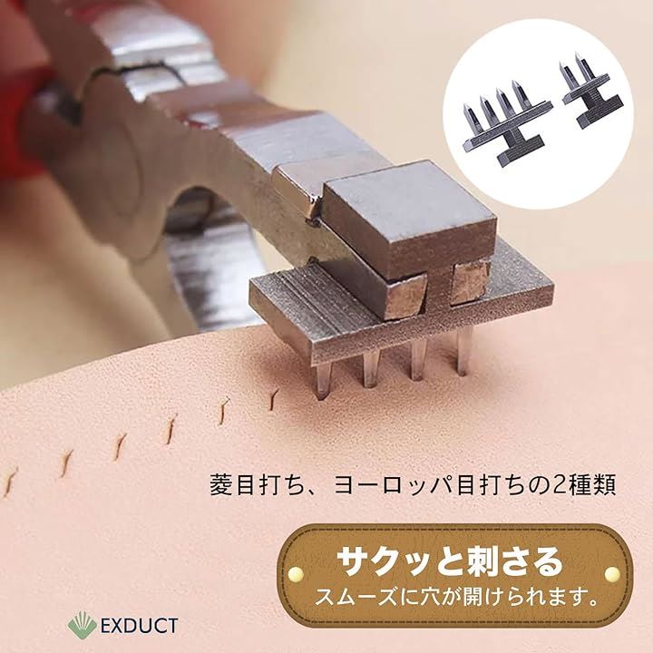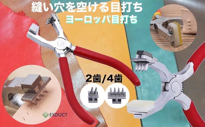 レザークラフトセット 目打ちパンチ 穴あけパンチ 2歯 4歯 DIYツール