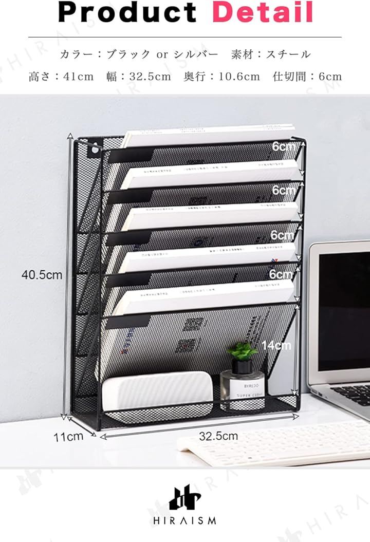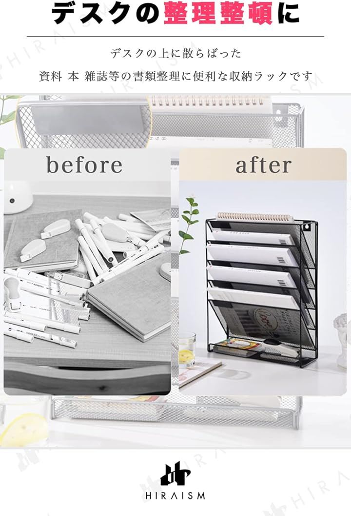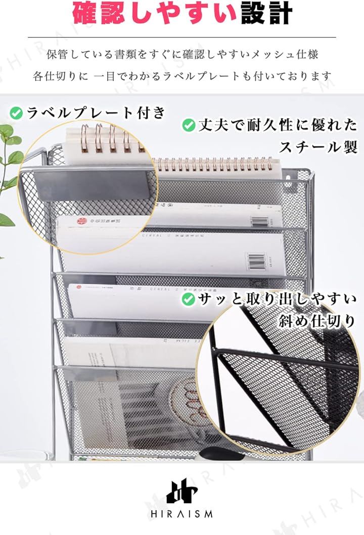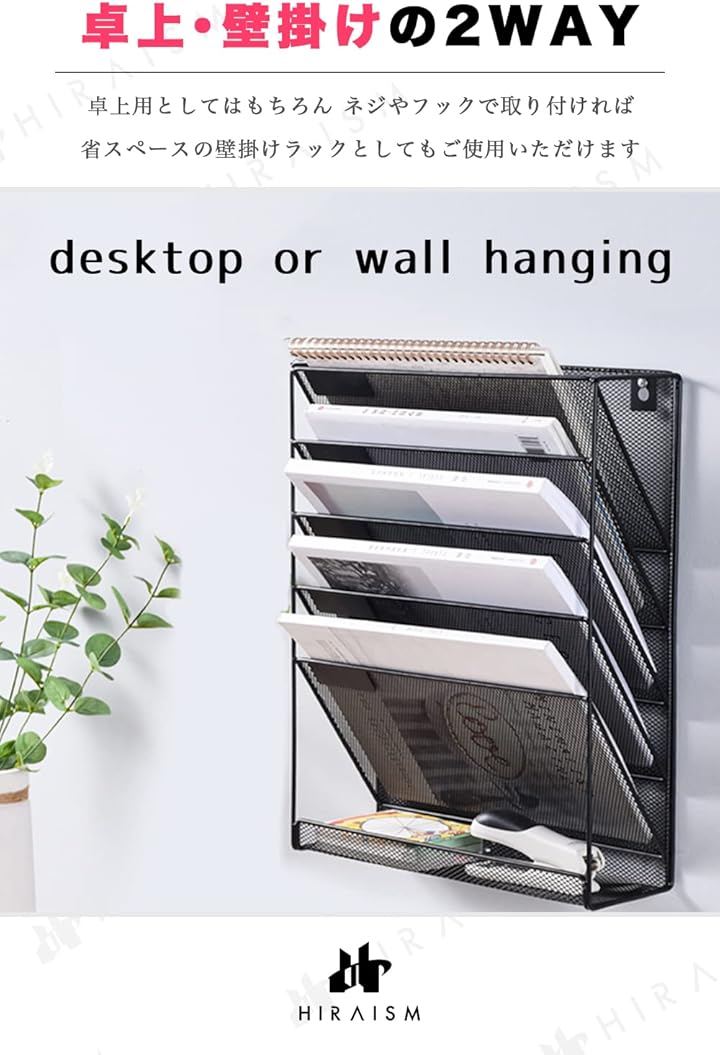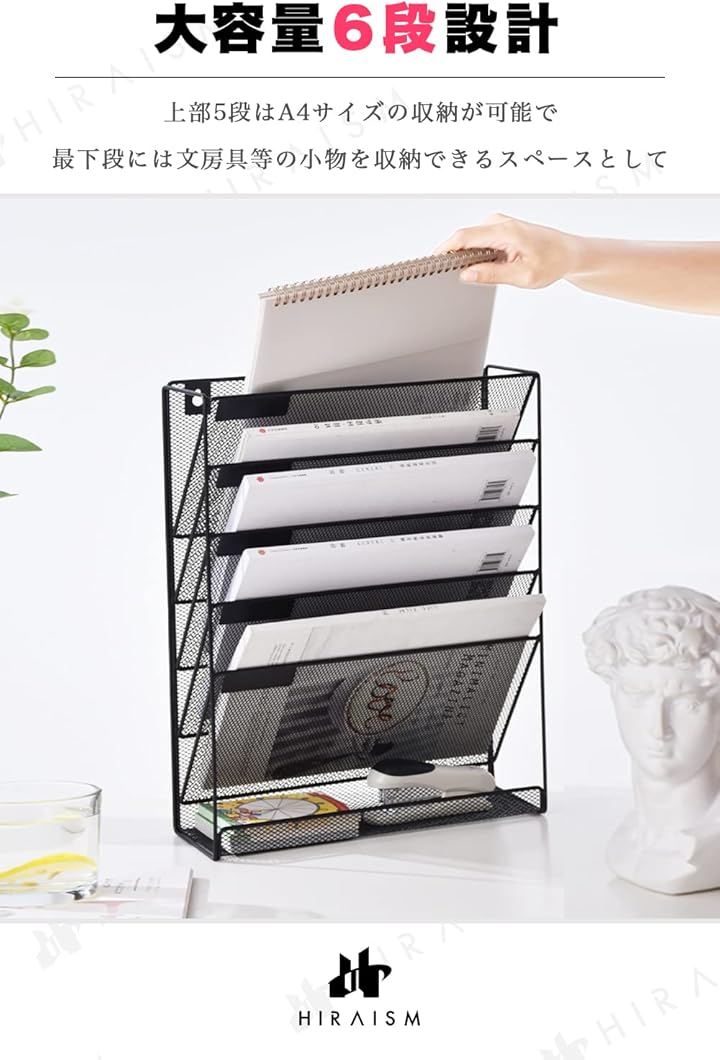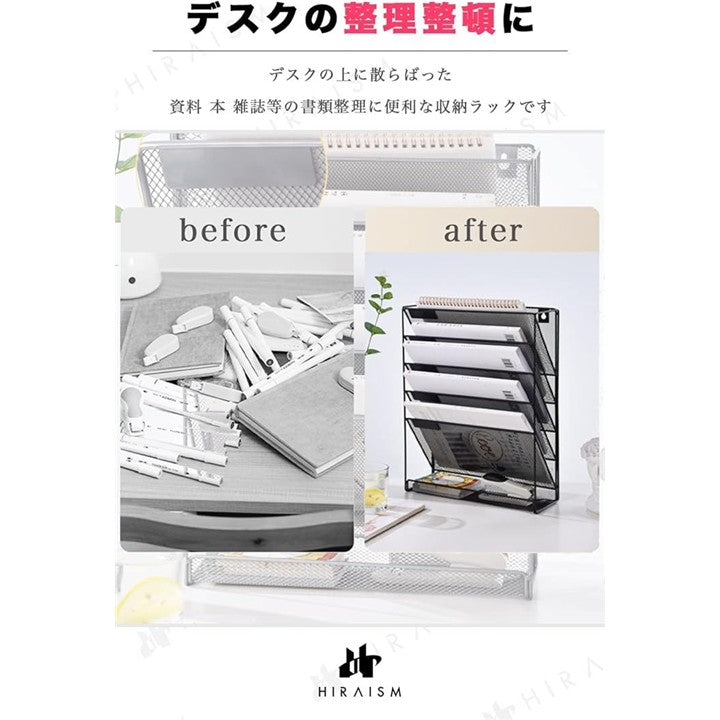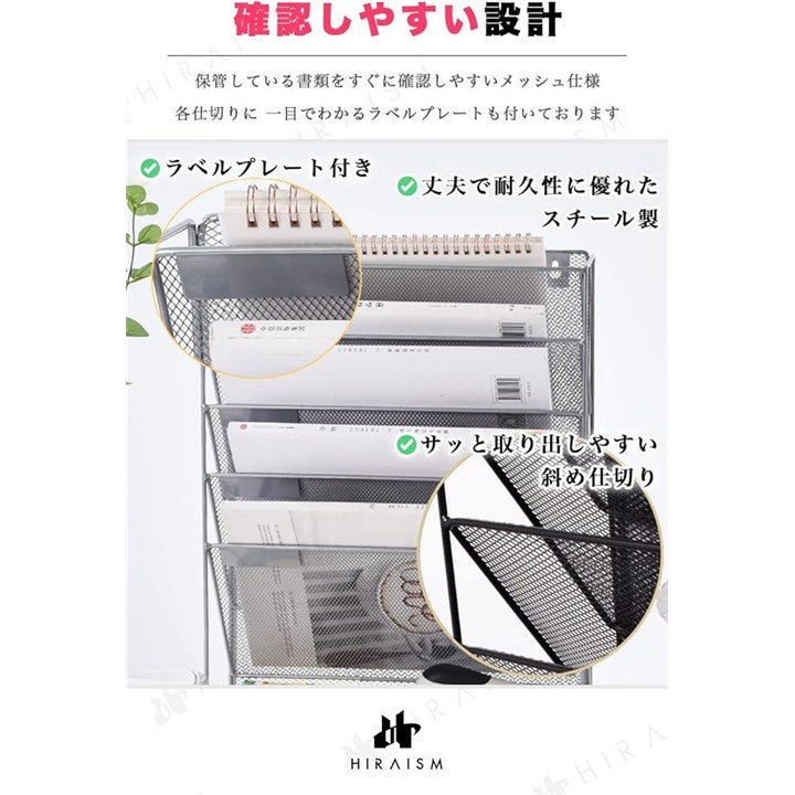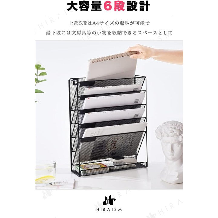 ファイルラック 壁掛け 卓上 収納 書類棚 A4 メッシュ スチール 6段