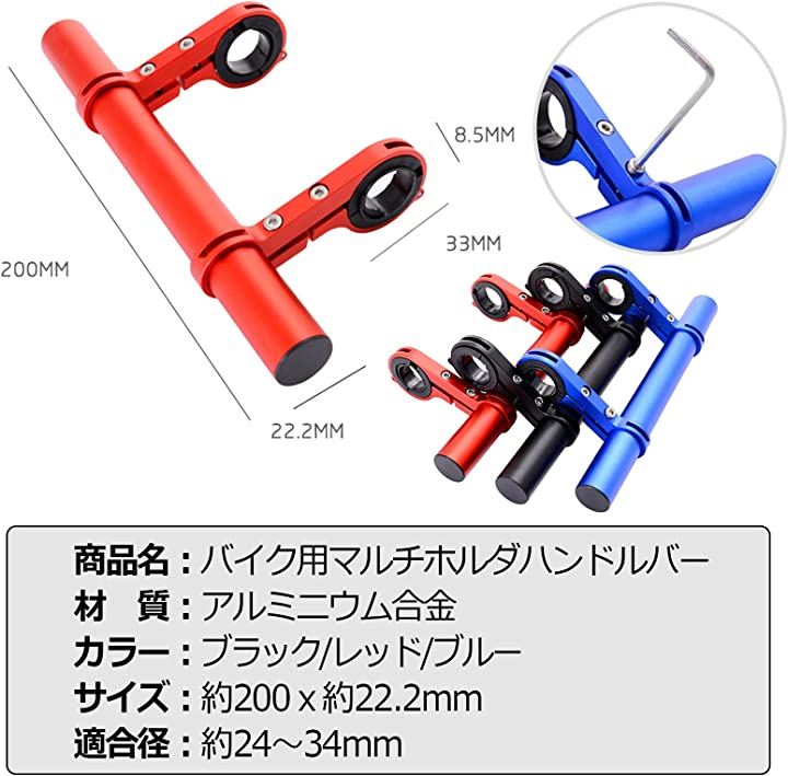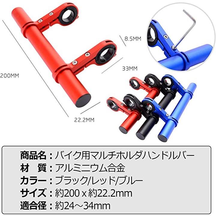 互換品 バイク 自転車 マルチホルダー クランプバー ハンドルバー スマホ ライト ドリンクホルダー 20cm