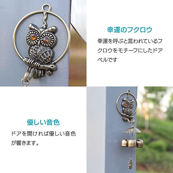 アンティーク調 ドアベル フクロウ マグネット 磁石 タイプ ドアチャイム 呼び鈴