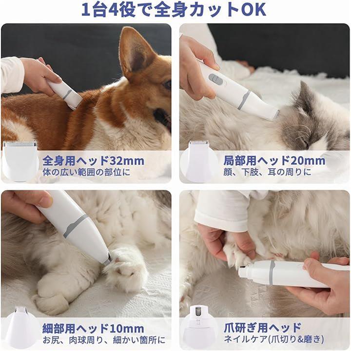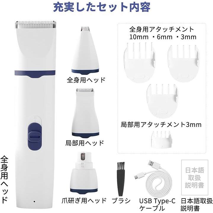 ペット バリカン 犬 猫 爪切り 電動バリカン 軽量 USB充電式 コードレス 動物用