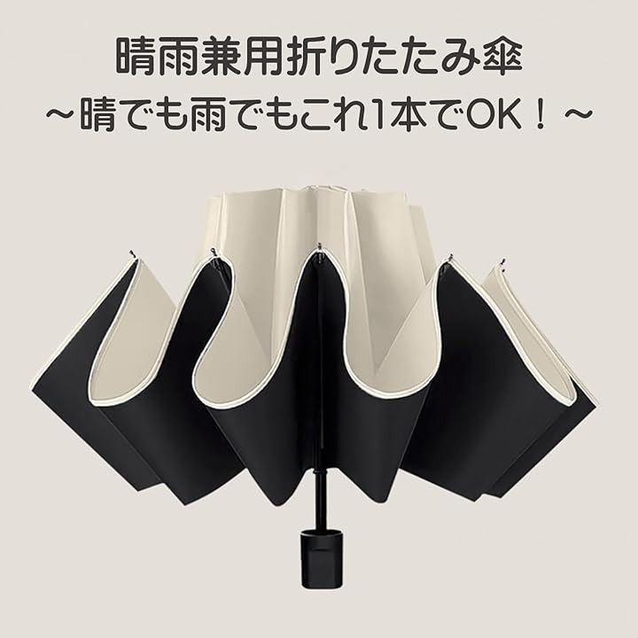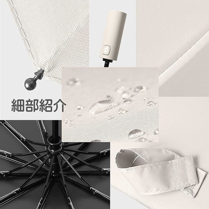 折りたたみ傘 日傘 晴雨兼用 UVカット ワンタッチ 自動開閉 12本骨 遮光 耐風 撥水 大きい UPF50+ (ベージュ) |