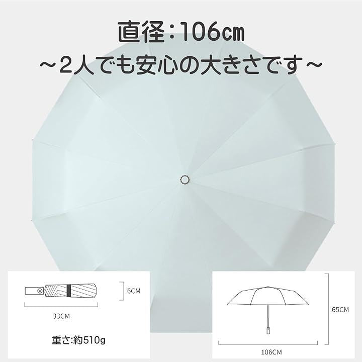 折りたたみ傘 日傘 晴雨兼用 UVカット ワンタッチ 自動開閉 12本骨 遮光 耐風 撥水 大きい UPF50+ (ミント) |
