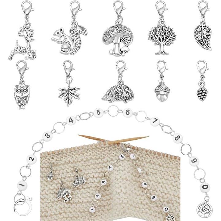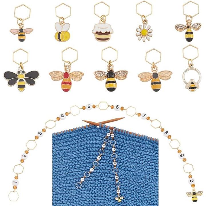 11点 段数マーカー 数字ステッチマーカー 0~9 合金&エナメル かぎ針編み用ローカウンター 段かぞえマーカーセット 編み物マーカー 段数リング 編み物ツール 収納ケース付き