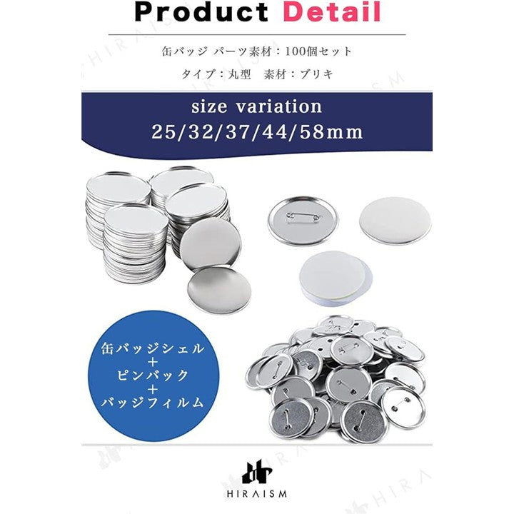 缶バッジ バッチ パーツ 素材 丸型 ボタン 手作り DIY 100個セット