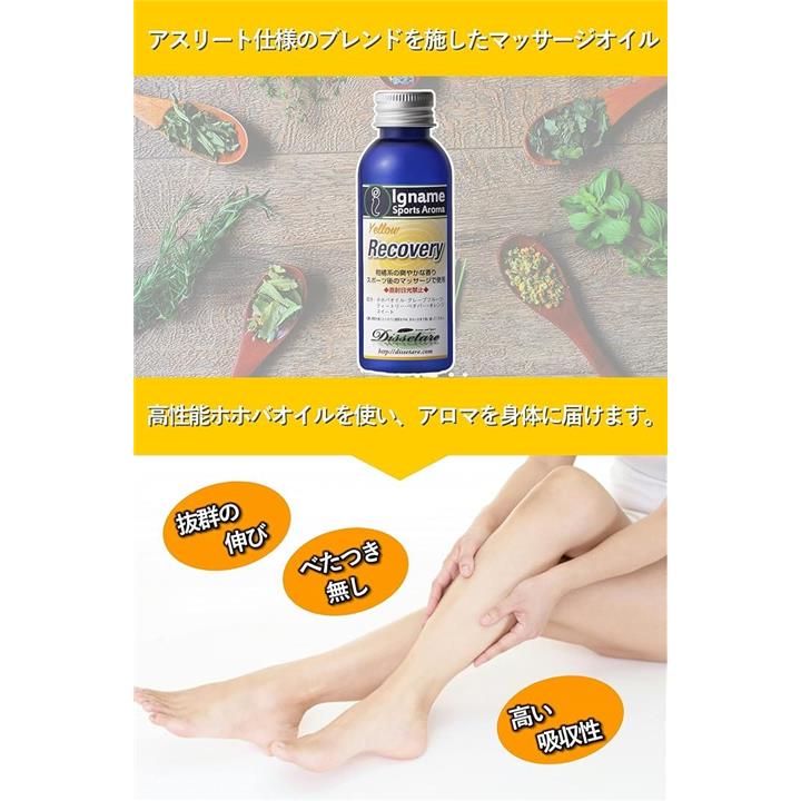 リカバリー マッサージオイル イエロー 柑橘系の香り ホホバオイル 100% マッサージ用 レース後 運動時 就寝前 イナーメオイル