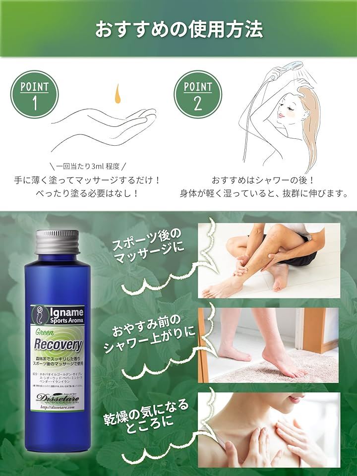 リカバリー マッサージオイル 森林系の香り ホホバオイル 100% マッサージ用 レース後 運動時 就寝前 イナーメオイル