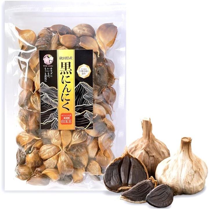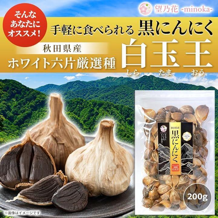 秋田県産 黒にんにく ホワイト六片厳選種 白玉王 白神山地の恵み 乾燥野菜 熟成発酵 旨味凝縮 フルーティーな味わい バラ 小粒 200g