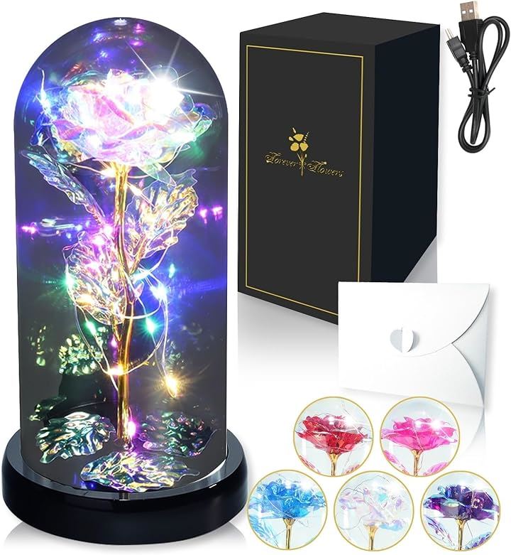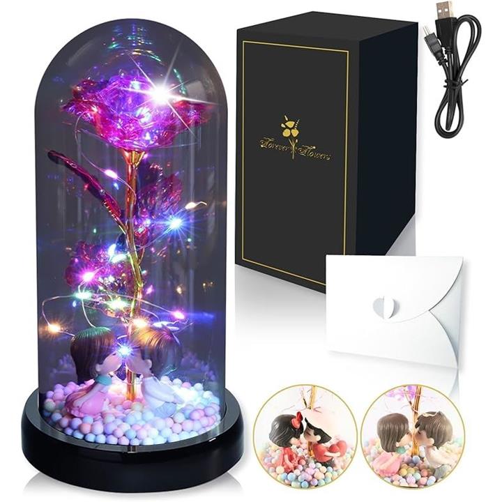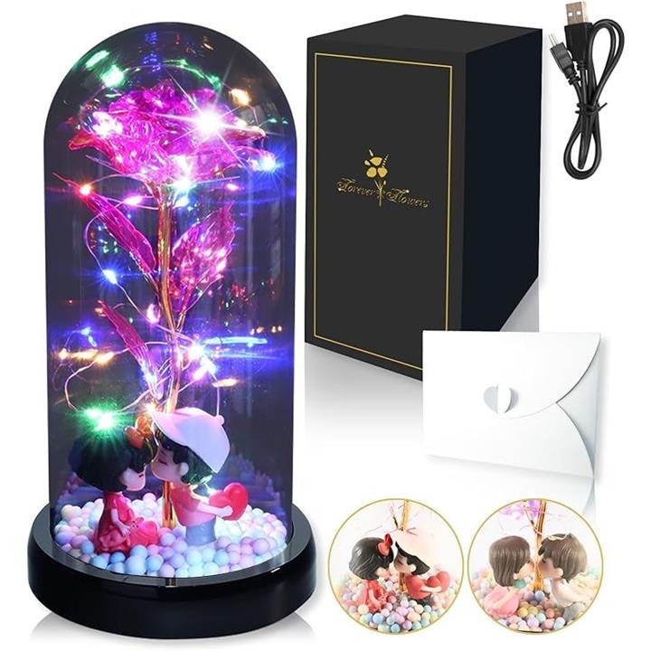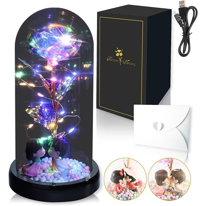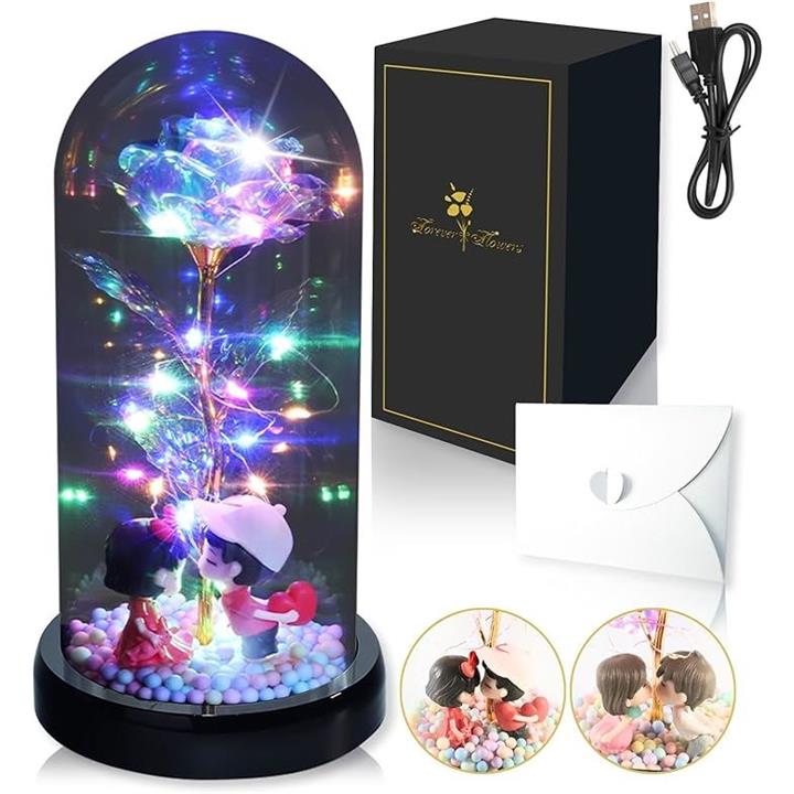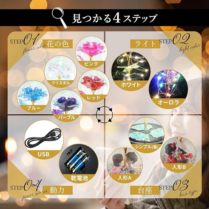 フラワーライト 枯れない花 「笑顔咲ク 光る花 」造花 バラ ForeverFlowers 結婚記念日 プレゼント 妻 彼女 バレンタイン ホワイトデー 誕生日 母の日 クリスマス [人形A クリスタル オーロラライト USB電池両用] |