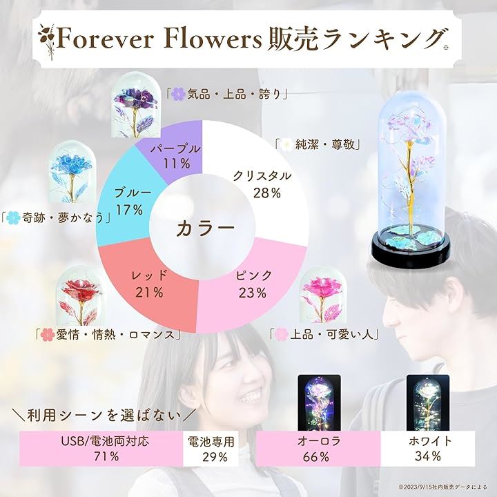 フラワーライト 枯れない花 「笑顔咲ク 光る花 」造花 バラ ForeverFlowers 結婚記念日 プレゼント 妻 彼女 バレンタイン ホワイトデー 誕生日 母の日 クリスマス [クリスタル オーロラライト USB電池両用] |