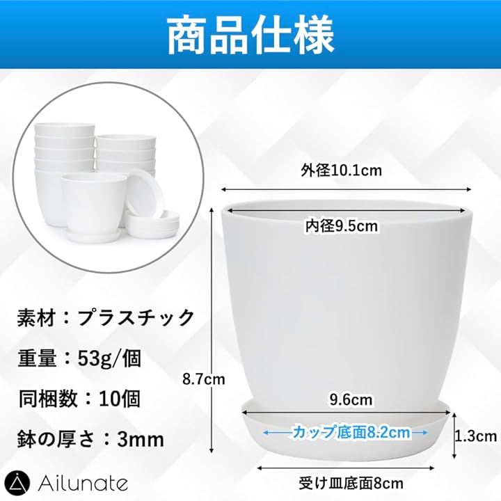 植木鉢 プラスチック 観葉植物 多肉植物 3号鉢 おしゃれ プランター 鉢植え ポット 受け皿付き プラ鉢 排水10個セット
