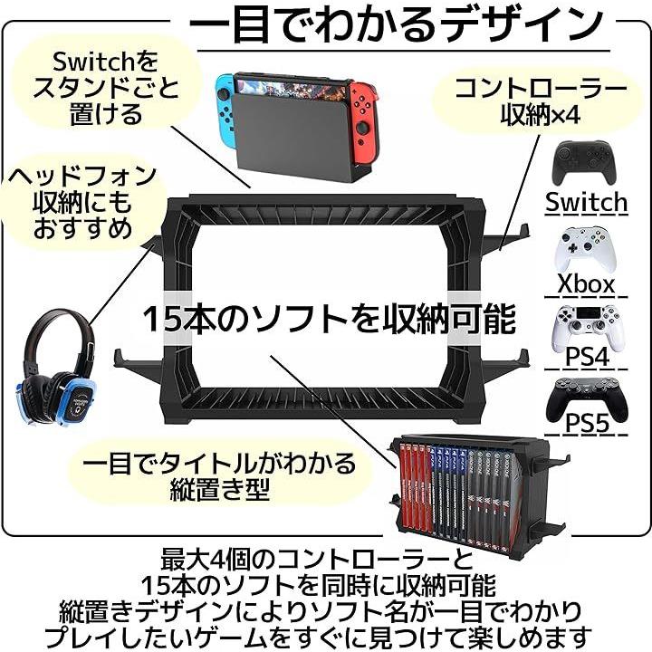 互換品Switch PS4 PS5 Xbox ゲームソフト収納 コントローラースタンド ソフト15枚 社外品