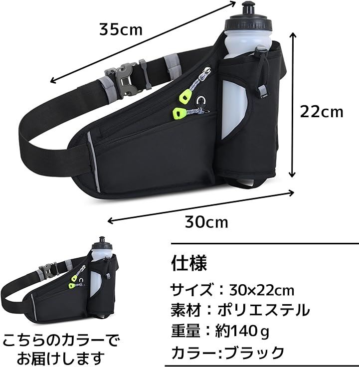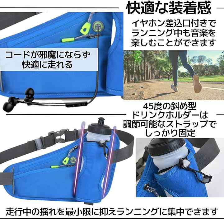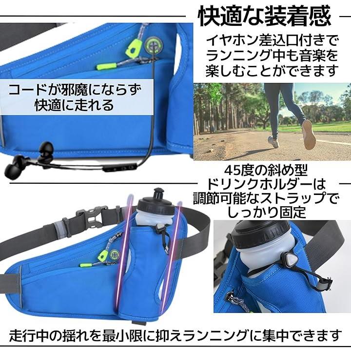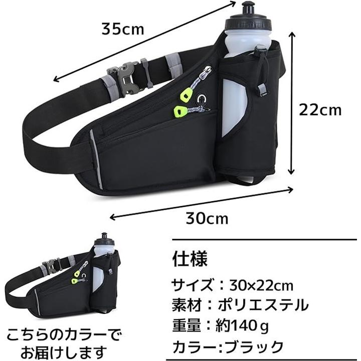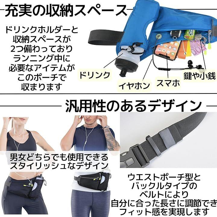 互換品ランニングポーチ ウエストポーチ 密着 揺れない 防水 軽量 男女兼用 イヤホン差込口付 ウォーキング ジョギング フィットネス 登山 黒