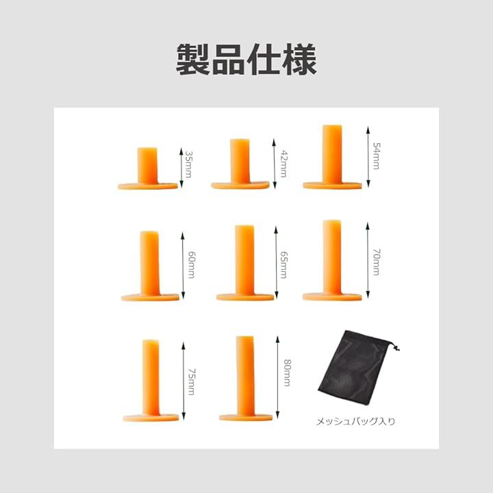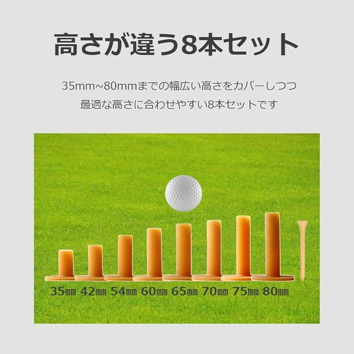 ゴルフティー 練習用 ゴムティー パーマネントティー 高さ違い 8本セット 収納袋付