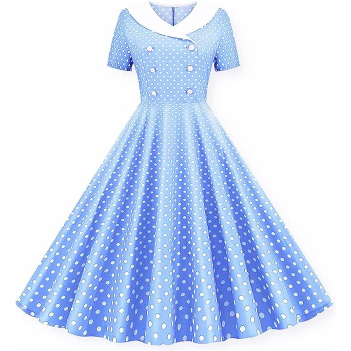 レディースワンピース 水玉半袖 Aライン 膝丈 ドレス レトロワンピース ロカビリーコスプレ (みずいろ, XL) |