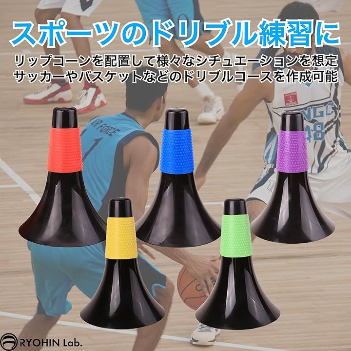 良品ラボ リップコーン 持ち運び 収納 簡単 ラバーグリップ 倒れにくい ドリブル バスケ サッカー 5本セット