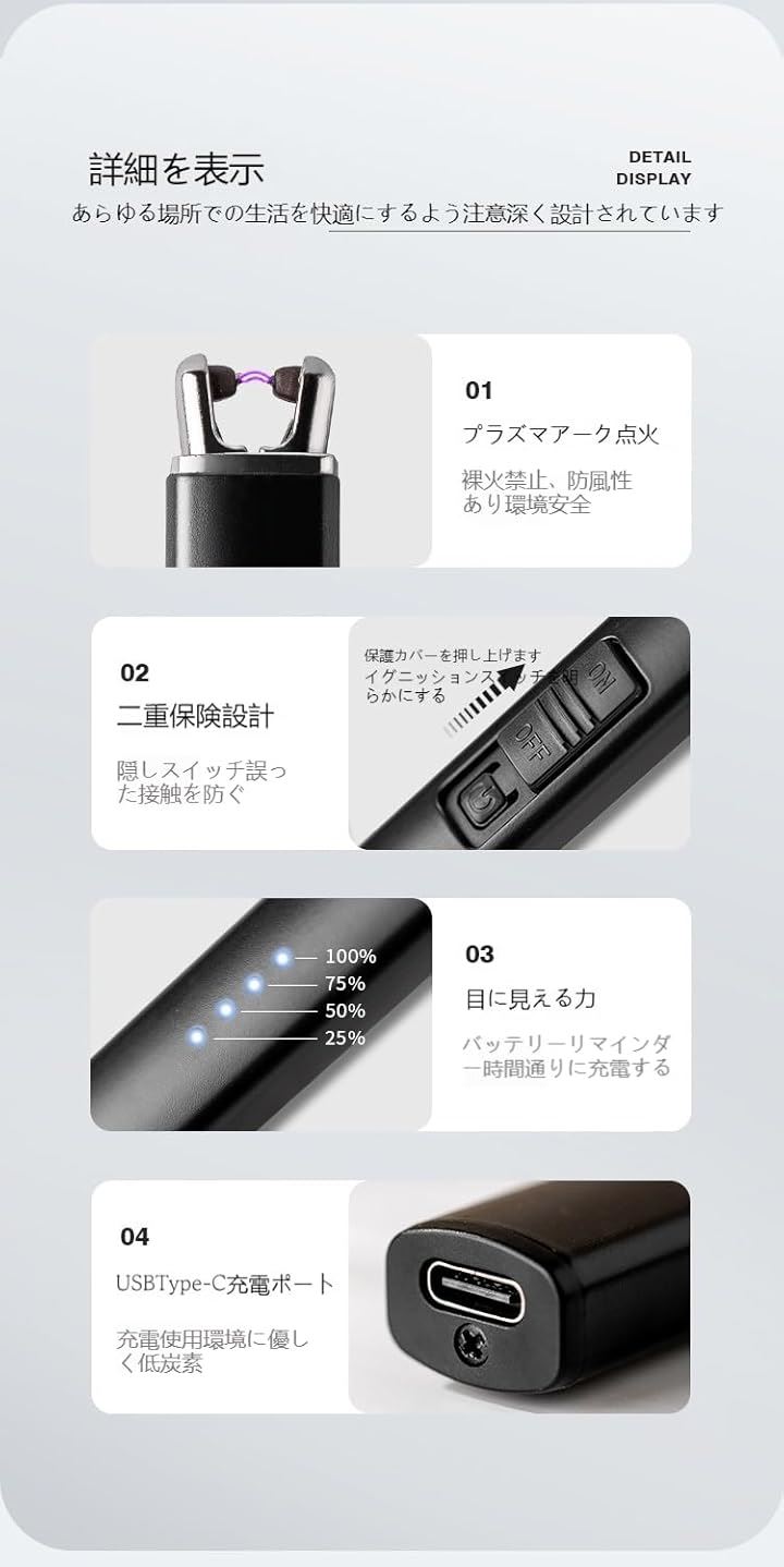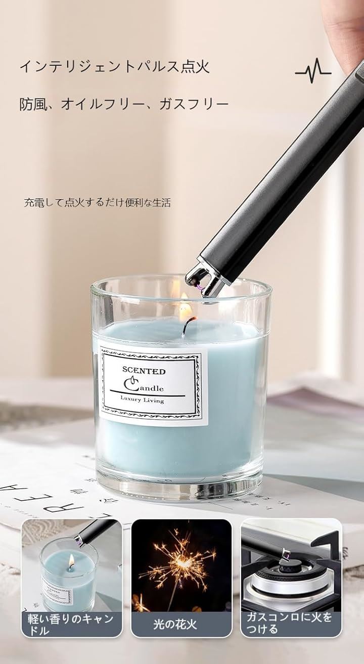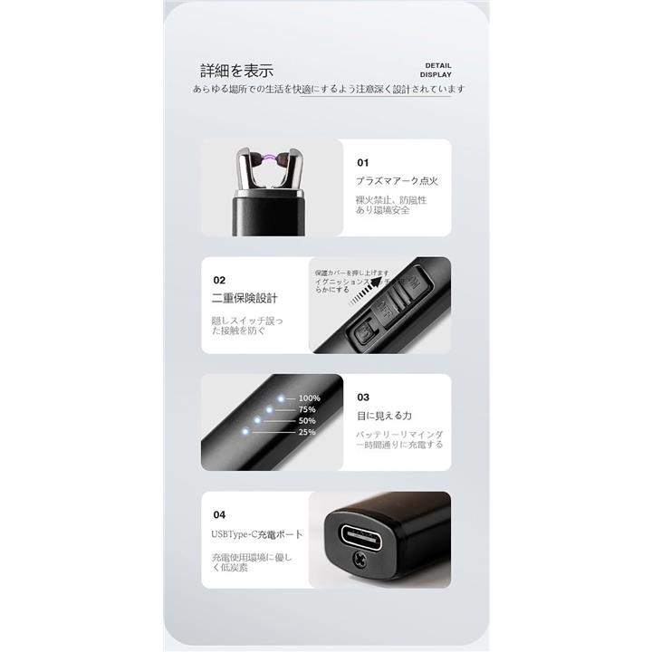 電子ライター 火が出ない 充電式 キャンドルライター USB-TypeC プラズマライター 線香 ローソク