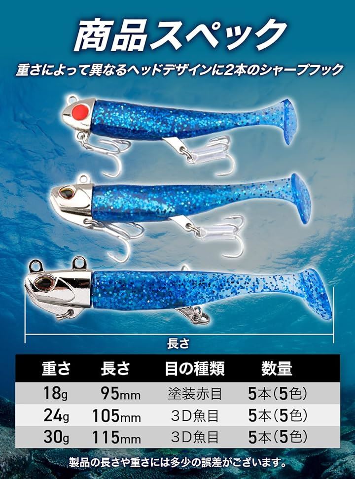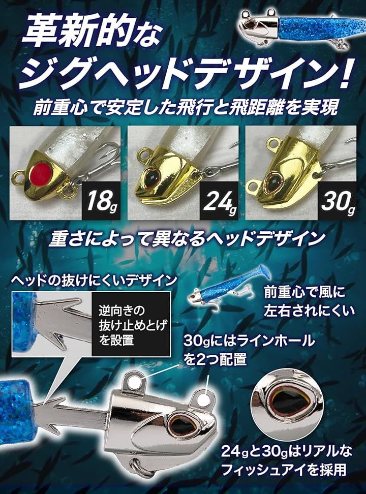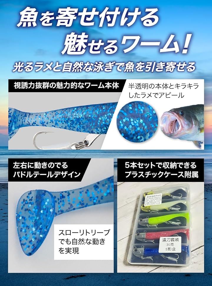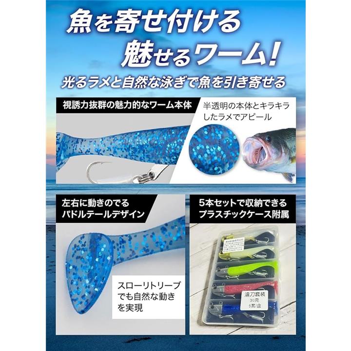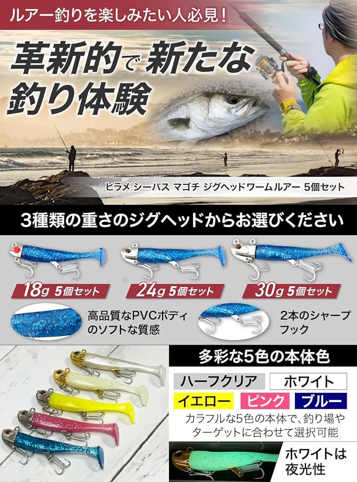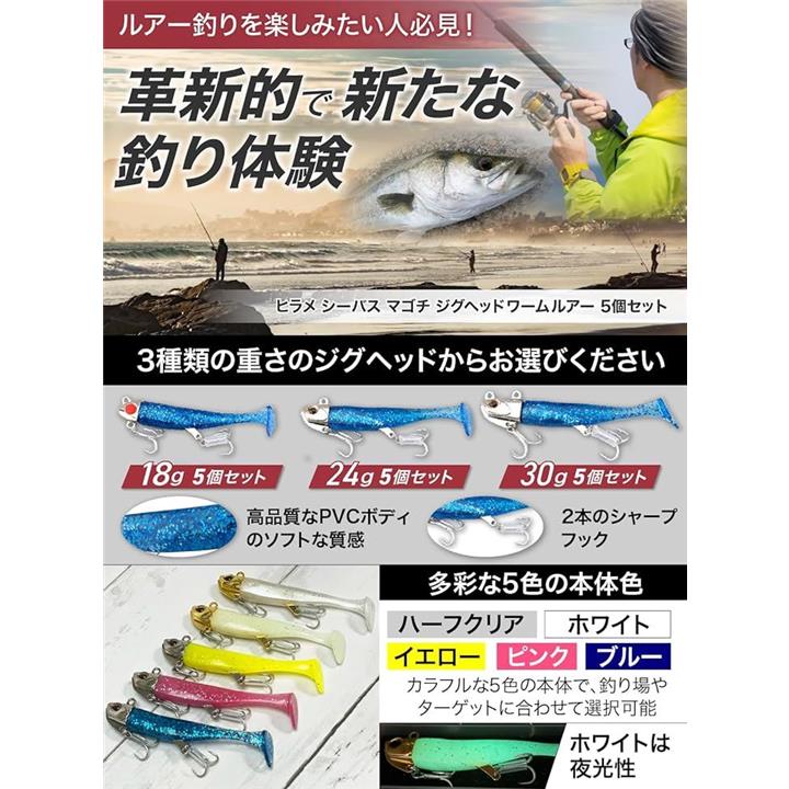 ヒラメ シーバス マゴチ ジグヘッド ワーム ルアー 5個セット