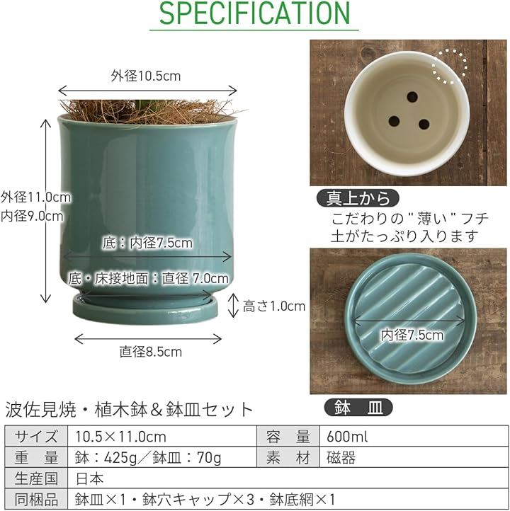 日本製 植木鉢 受け皿付 10.5x11.5cm 3.5号 4号 波佐見焼