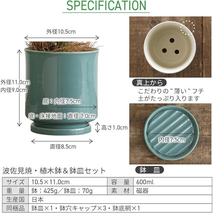 日本製 植木鉢 受け皿付 10.5x11.5cm 3.5号 波佐見焼