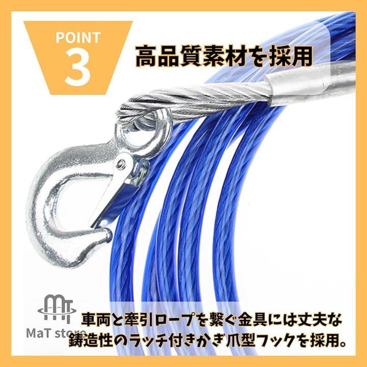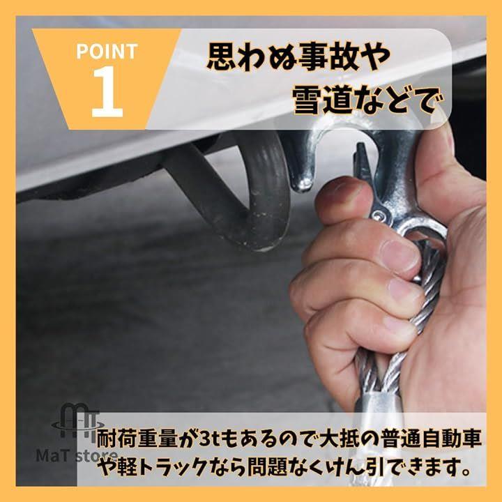 牽引ロープ 牽引ワイヤー 車 けん引 事故 災害 耐荷重3t 幅8mm 長さ4m 2本セット