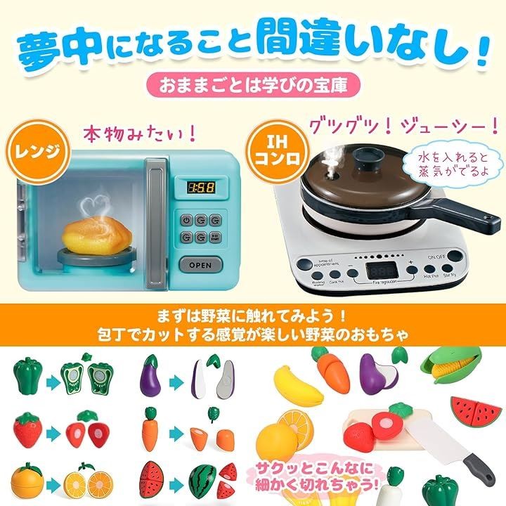 おままごと キッチン 電子レンジ 色が変わる リアルな野菜 IH ままごとセット 知育玩具 おもちゃ 圧力鍋 蒸気