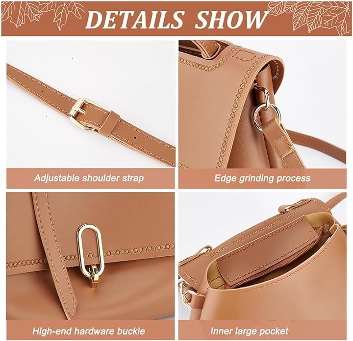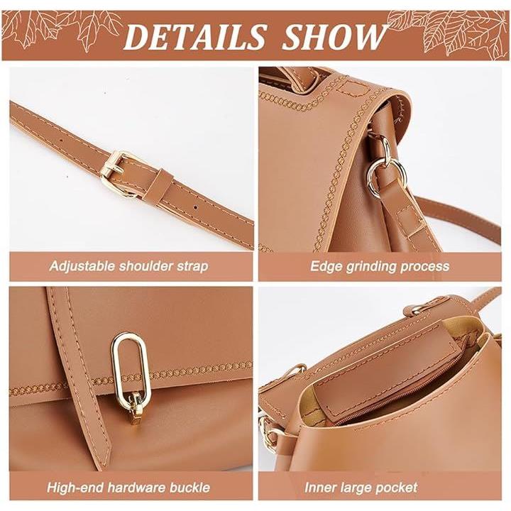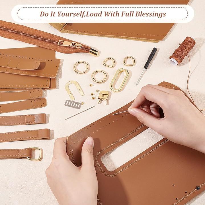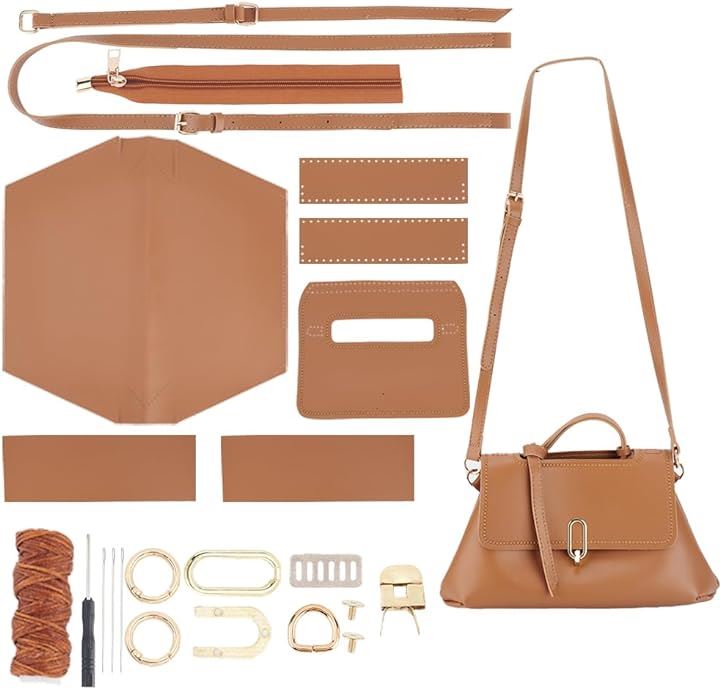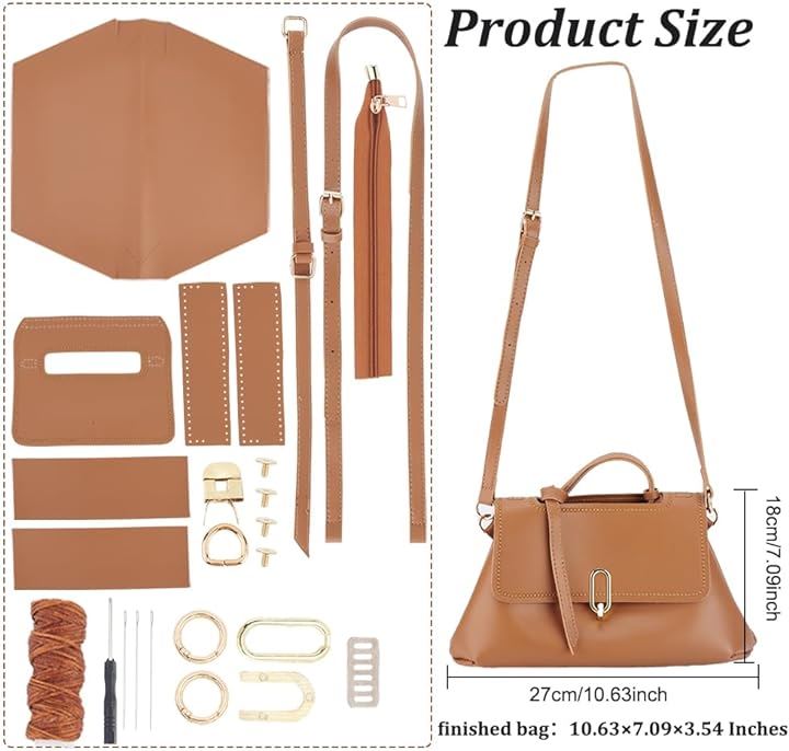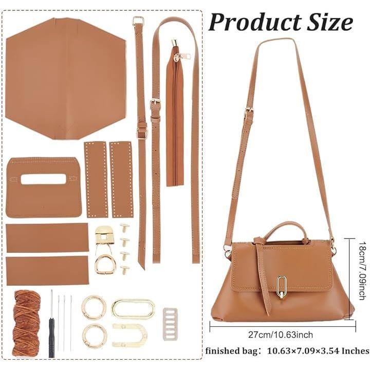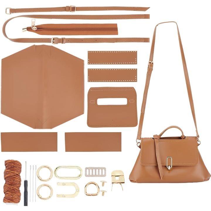DIY PUレザーバッグ縫製キット 手作りショルダーバッグ作成キット ハンドバッグ 財布 手縫い クロスボディバッグ クラフト 27x18x9CM ブラウン