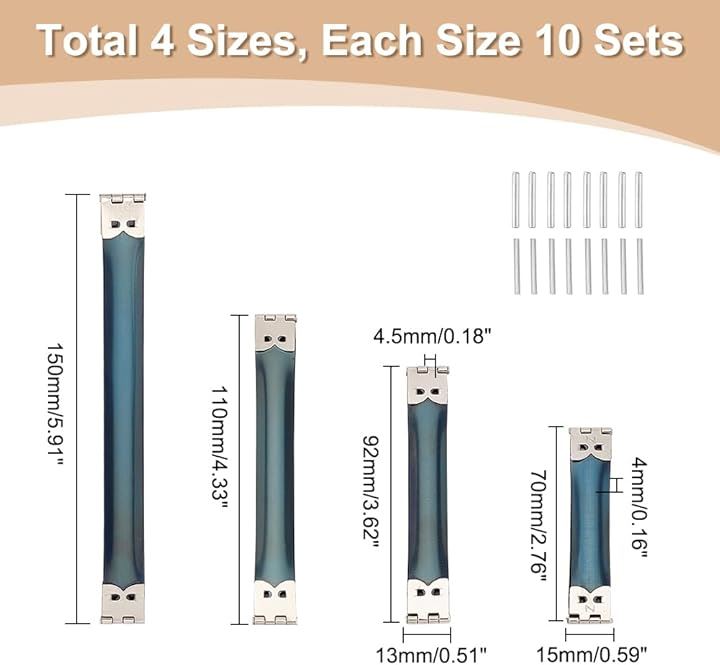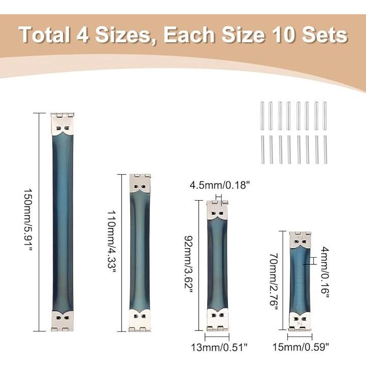 40本セット バネ口金 ばね口金 金具 4サイズ レザークラフト ハンドメイド バネポーチに 手作りの財布 手芸材料 7/9.2/11/15cm
