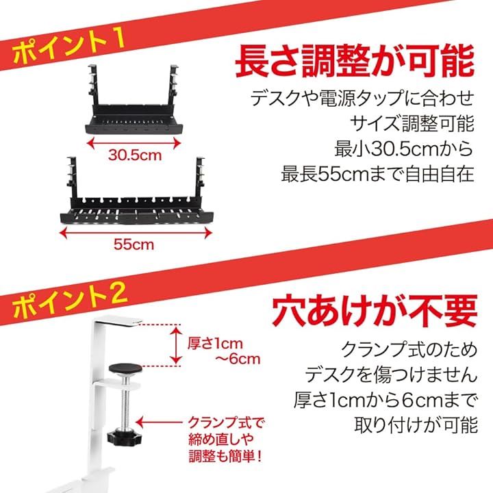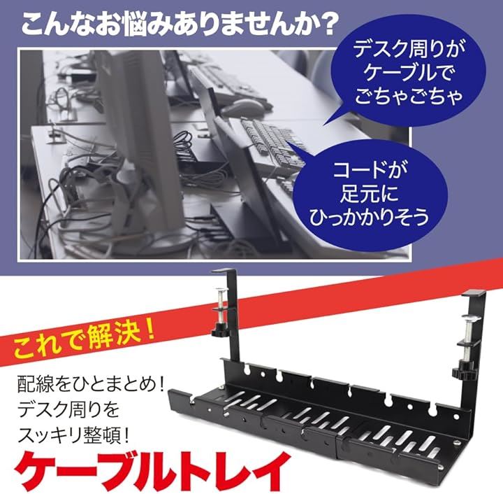 AllBright ケーブルトレー 配線収納 配線隠し 整理 デスク下 収納トレー 伸縮可能