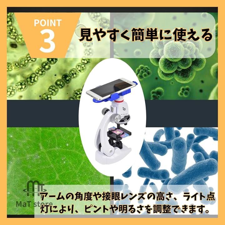 顕微鏡 研究 実験 小学生 中学生 子ども向け 学習 プレゼント 撮影 100倍-1200倍