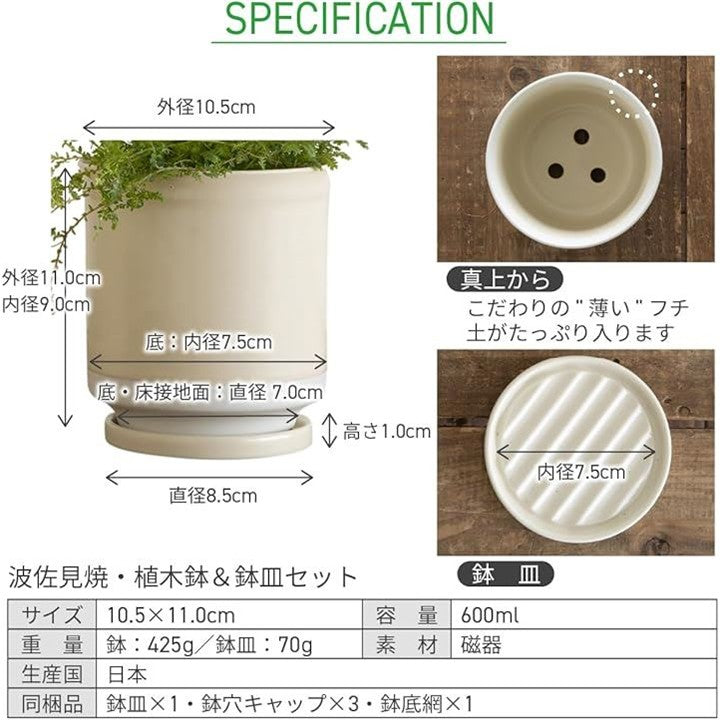 日本製 植木鉢 受け皿付 10.5x11.5cm 3.5号 波佐見焼