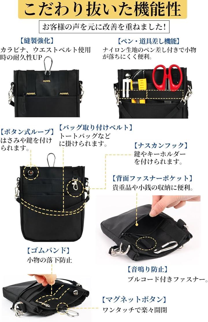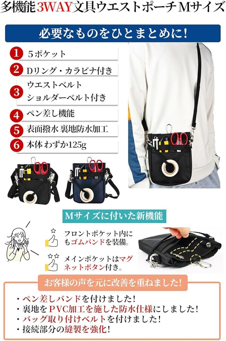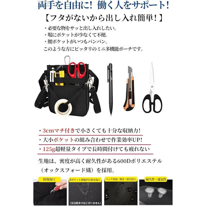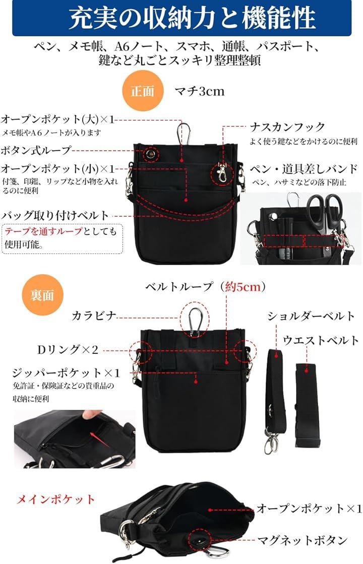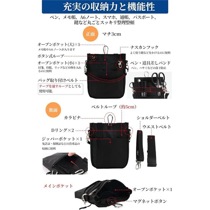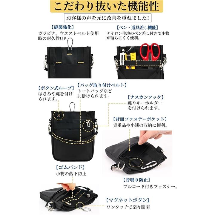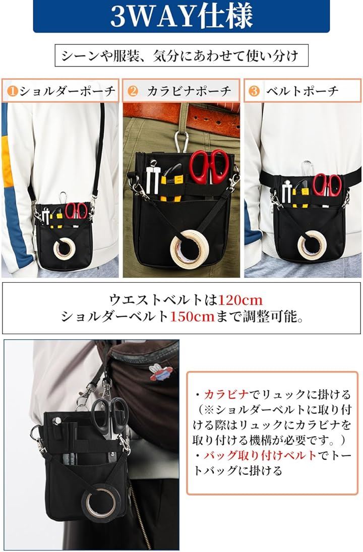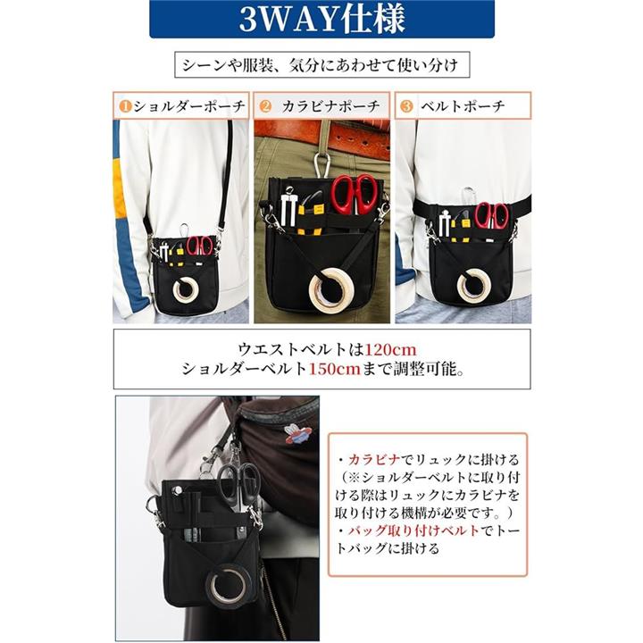 多機能 3WAY文具 ウエストポーチ ペンケース マチ付き ペンポーチ ポケットオーガナイザー ナースポーチ ベルトポーチ 作業ポーチ 仕事用 事務 看護 介護 ウエストベルト ショルダーベルト カラビナ付き 撥水 防傷加工 |