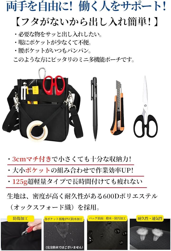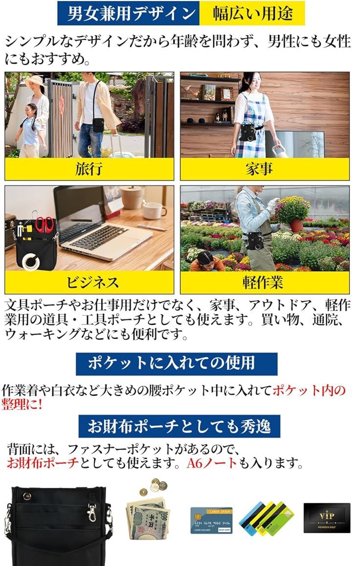 *「幅広い用途」文具ポーチやお仕事用だけでなく、家事、アウトドア、軽作業用の道具・工具ポーチとしても使えます。