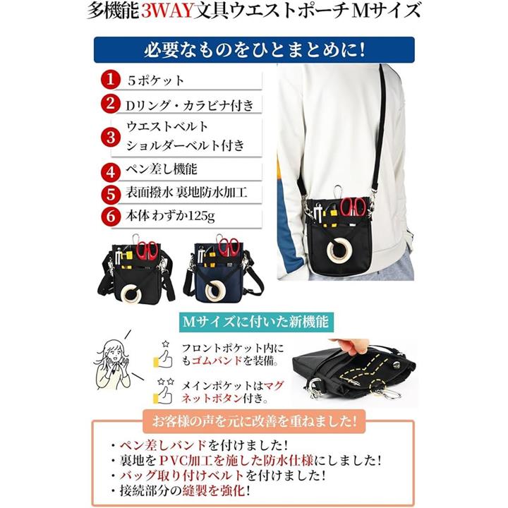 *軽くて丈夫、シンプルデザイン&多数の便利機能を兼ね備えた文具ウエストポーチ Mサイズ。