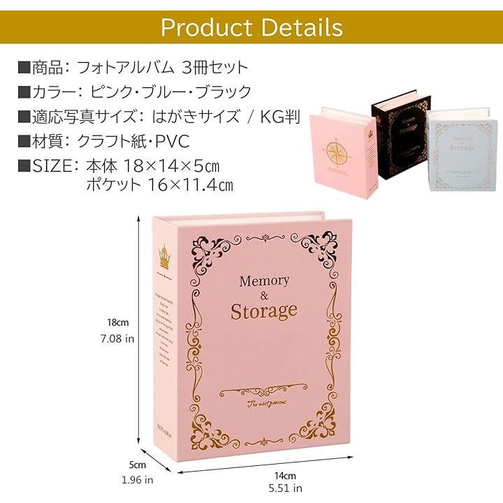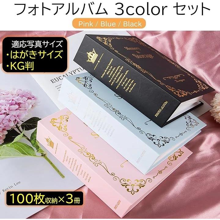 フォトアルバム はがきサイズ KG 縦入れ ミニ 大容量 100枚収納 3色セット 写真