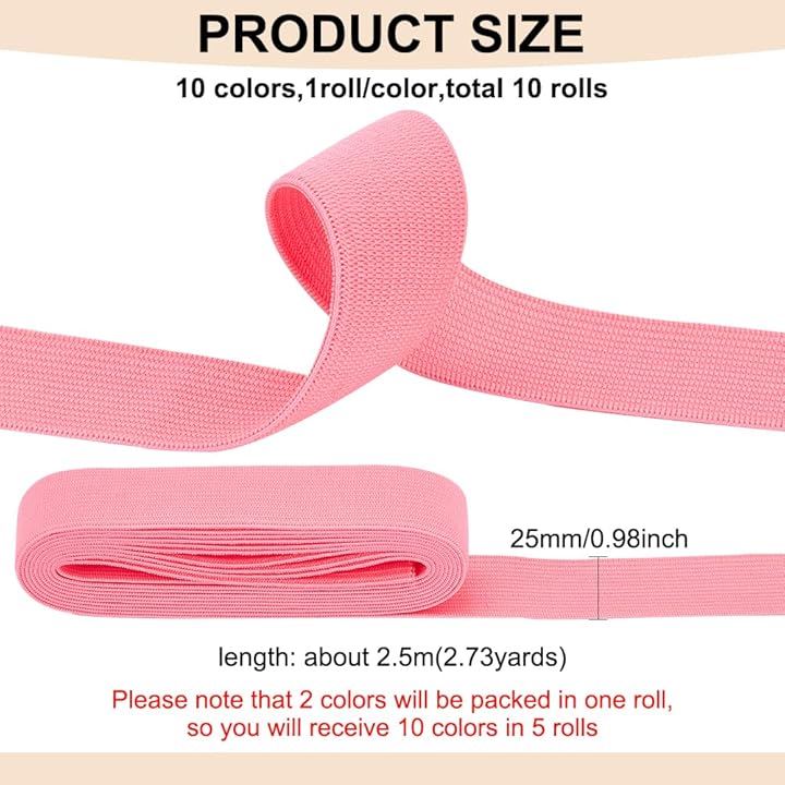 10色 約2.5m/色 弾性バンド 弾性ゴムバンド 平ゴムバンド 強い弾性 交換バンド 伸縮性バンド 服 ベルト交換 手芸裁縫 裁縫材料