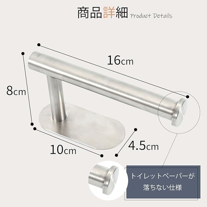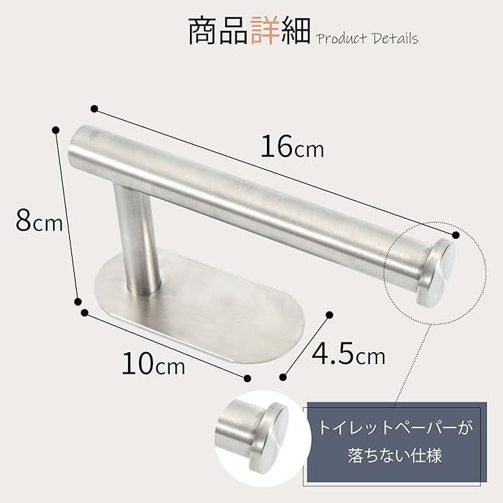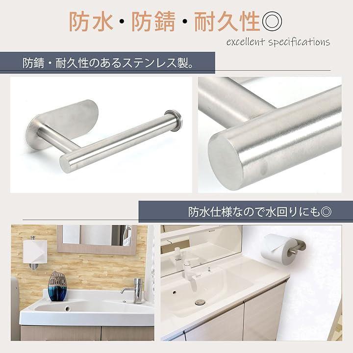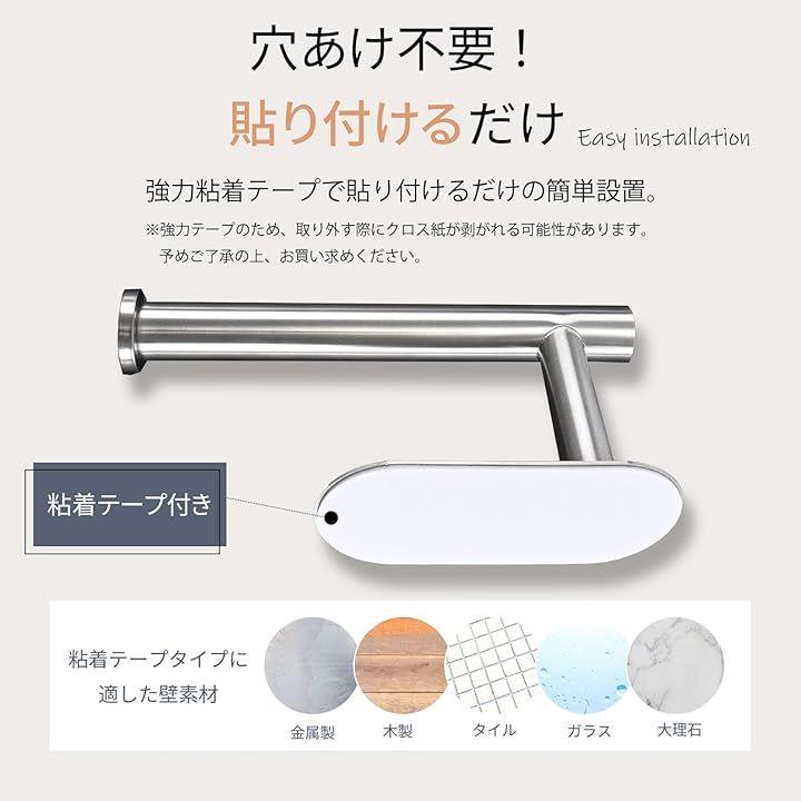 トイレットペーパーホルダー ステンレス 粘着 簡単取り付け テープ付き 一連式 モダン シンプル ステンレス304鋼