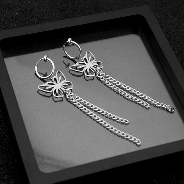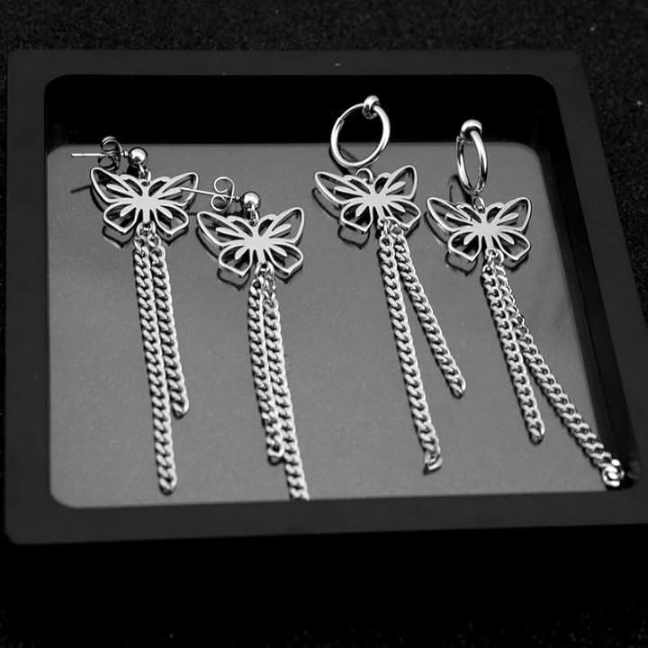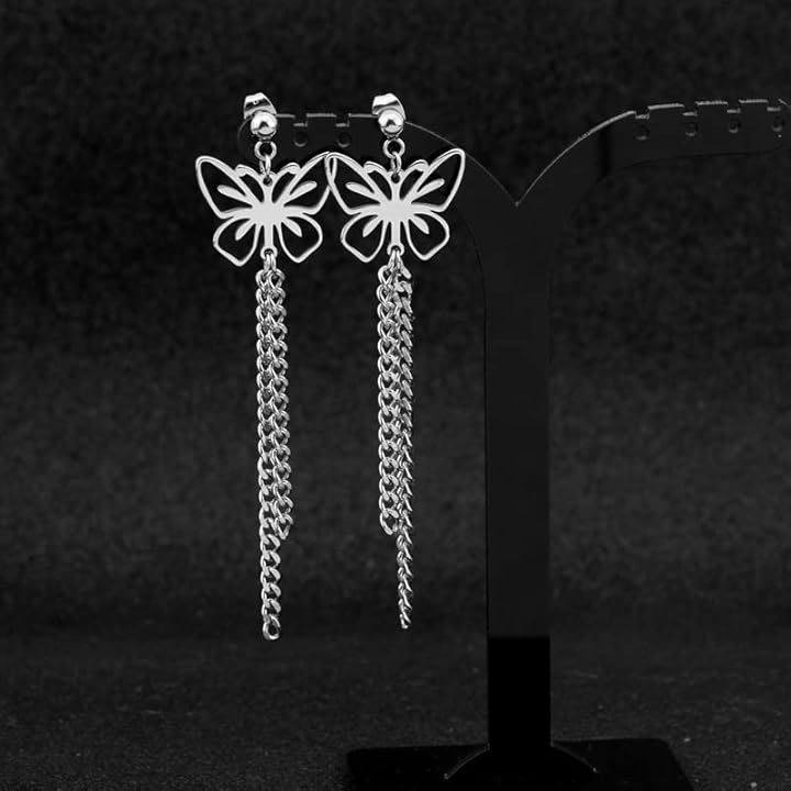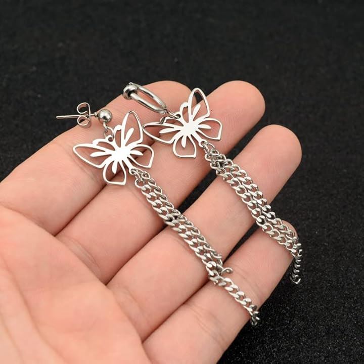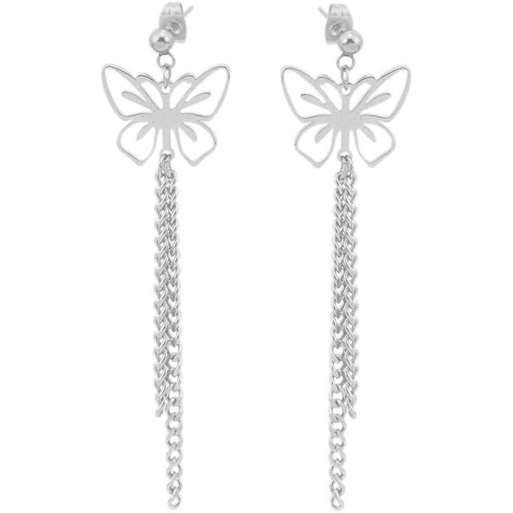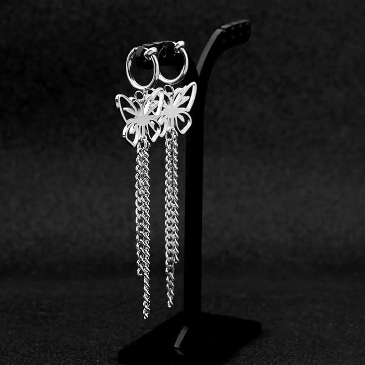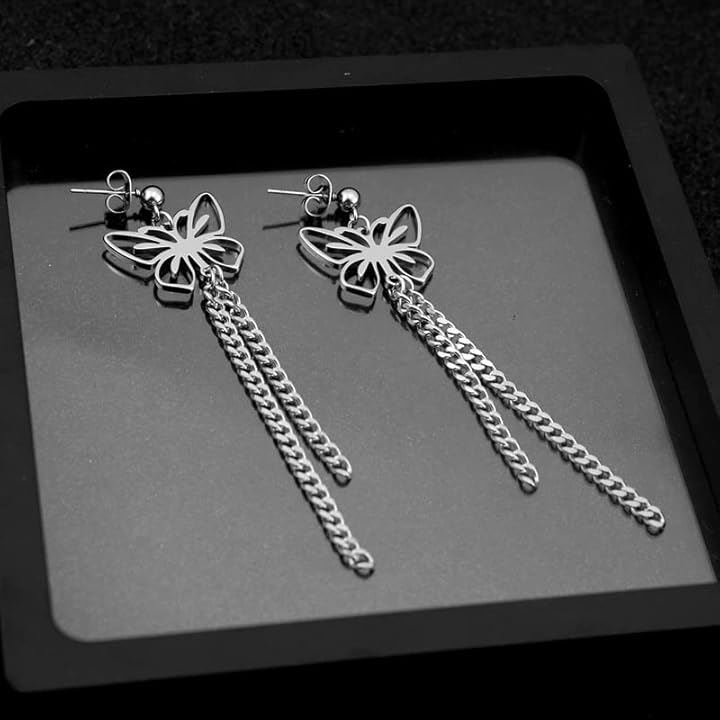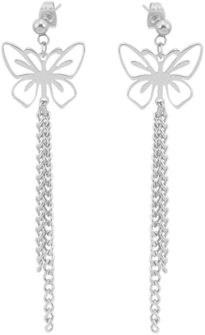バタフライ 蝶々 両耳用2つ入り 垂れさがりチェーン 二連 ステンレス お洒落 揺れる ユニセックス