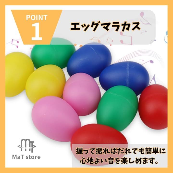 マラカス エッグシェイカー 楽器 パーカッション たまご型 打楽器 5色 40個セット
